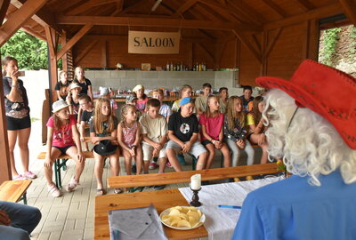 Hned od rána se cvičilo s papírovými koulemi, abychom byli připraveni na střet se starostou. Starostovi lidé skutečně přišli – před sebou hnali Billa s truhlicí s dokumenty nad hlavou. Naštěstí se nám podařilo jejich útok odrazit a Indina dokonce zajala Jacoba Halleyho. Po posledních dokončovacích pracích westernových městeček začalo soudní řízení. Předložené usvědčující dokumenty, četná svědectví včetně výpovědí některých účastníků nedaly soudci jinou možnost než poslat hamižného starostu na mnoho let do vězení. Zvítězili jsme. Večer se pak nesl v krásné atmosféře, kterou doplňovalo praskání ohně, radostné hlasy i hlasy smutnější – tábor pomalu končil a chvíle rozloučení s přáteli se blížila.
