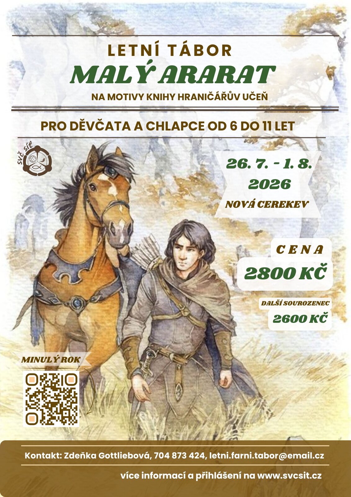 Letošní tábor na motivy knihy Hraničářův učeň od Johna Flanagana se ponese v dobrodružném duchu. Ani letos nebude chybět poutavý příběh, ve kterém si v přátelské atmosféře zahrajeme spoustu her, zasportujeme si i něco pěkného vyrobíme. Chybět nebudou ani hravé večerní modlitby. Těšíme se na všechny nové i známé tváře.
