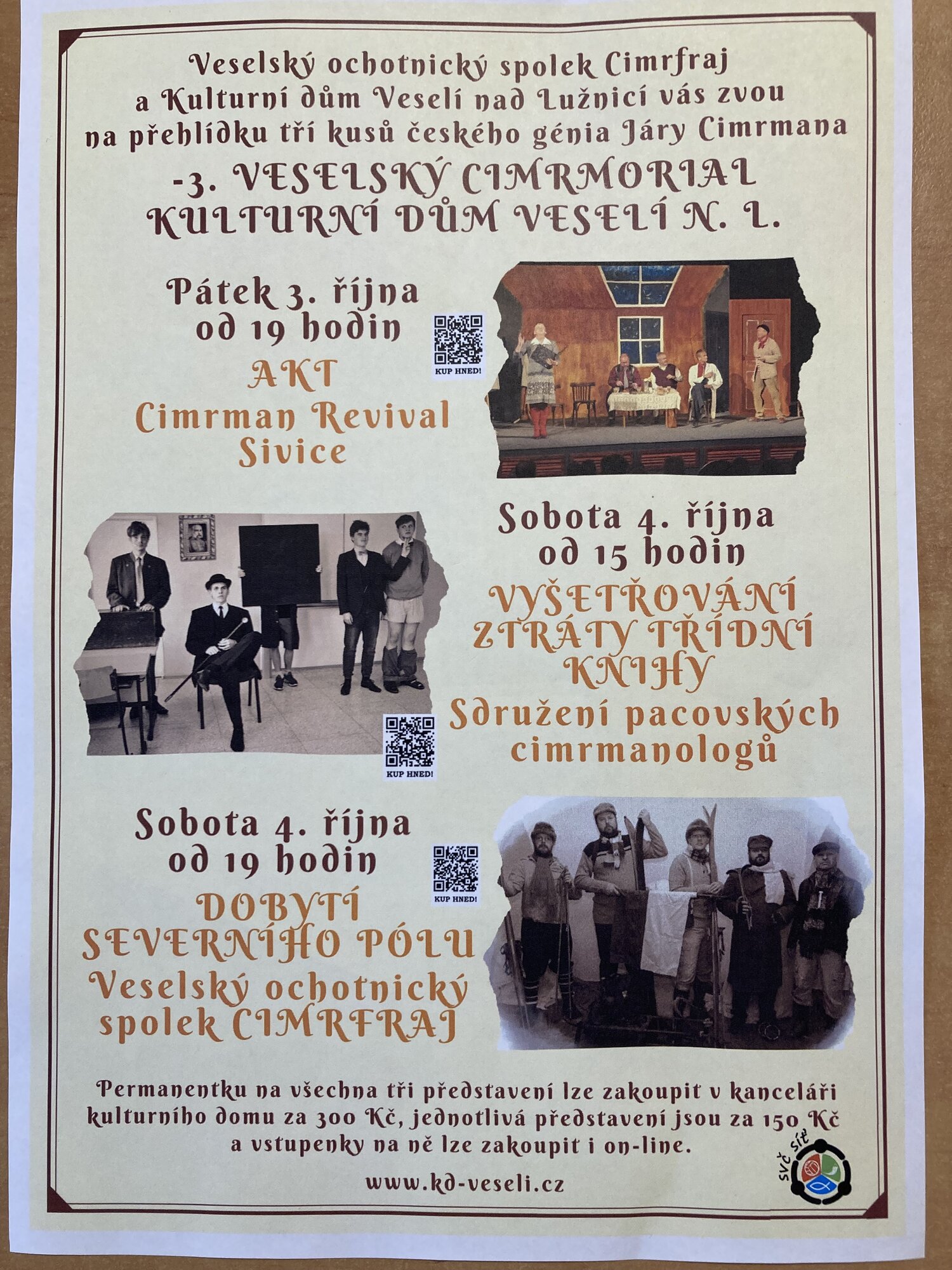 ÚvodPříležitostné akceVeselí nad LužnicíCIMRMORIAL CIMRMORIAL Hlavní rubrika: Veselí nad Lužnicí Rubriky: Veselí nad Lužnicí Datum: 3. října 2025 Místo: Kulturní dům Veselí nad Lužnicí Zpět | Nahoru | Tisk Sdílet: