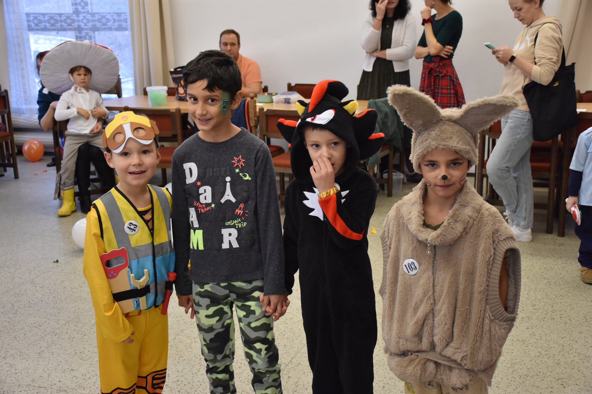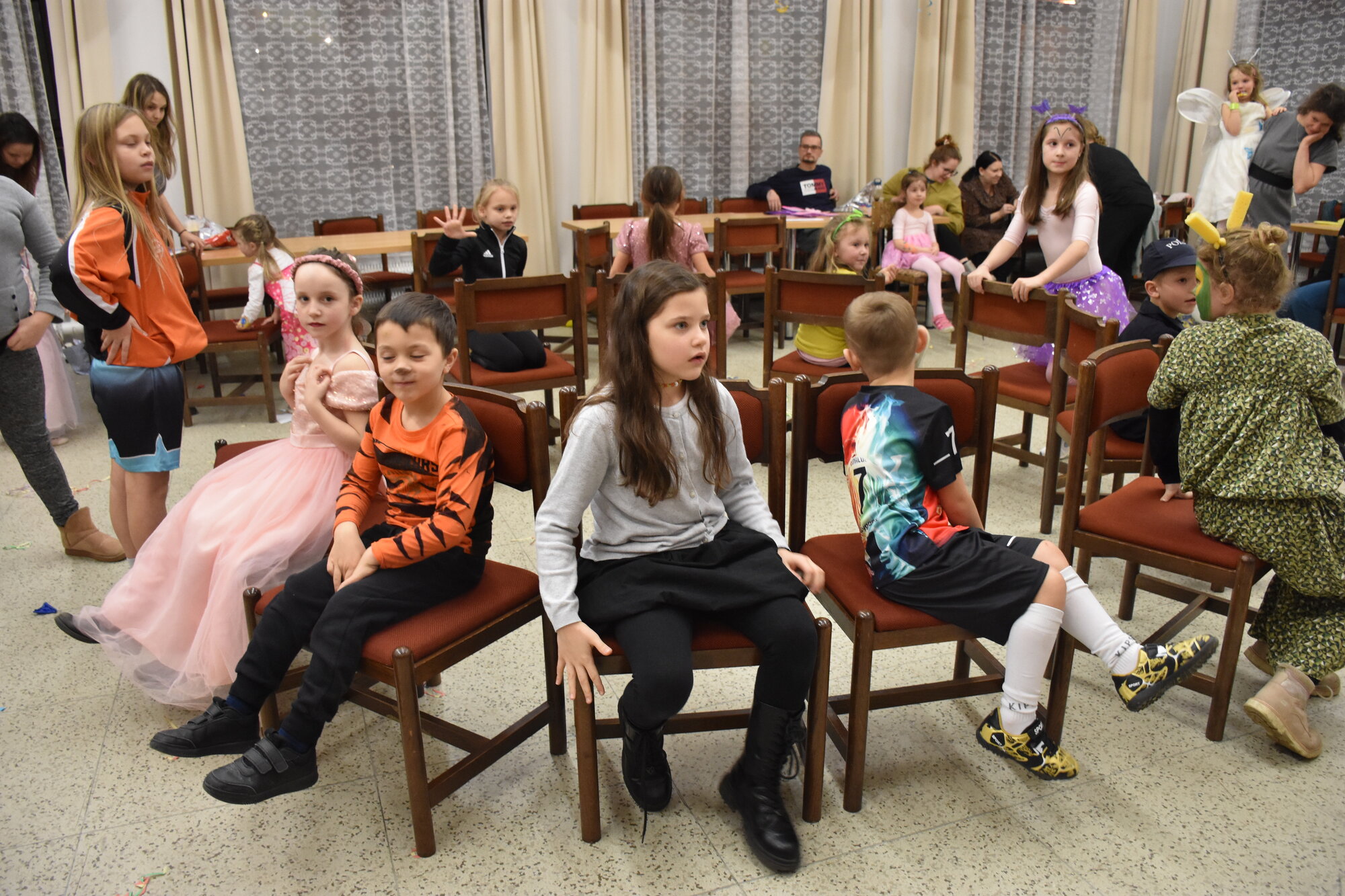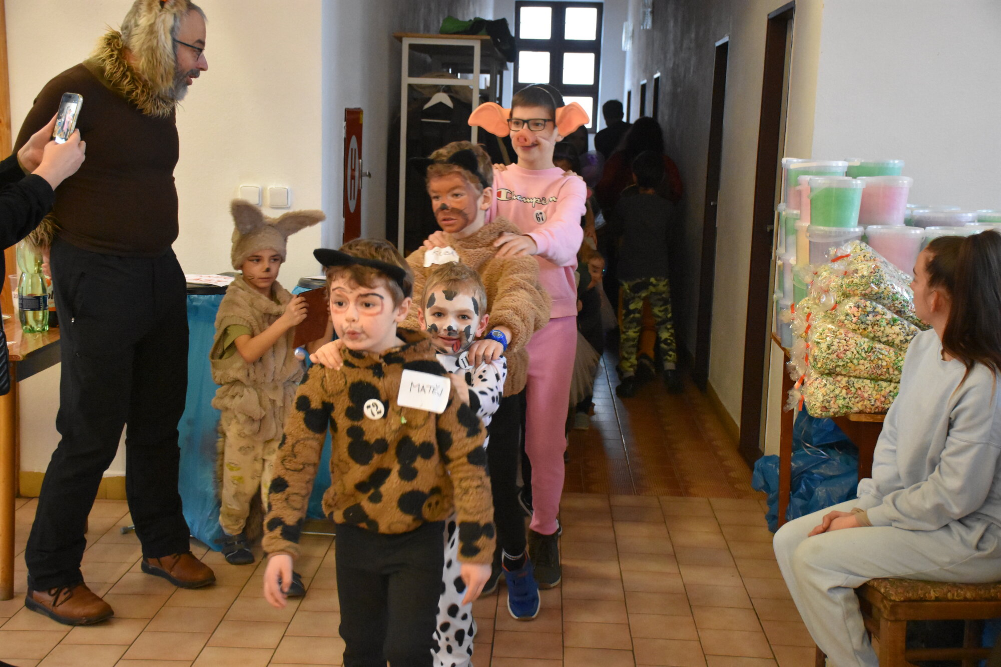 K závěru jsme vylosovali z některých masek a kostýmů šťastlivce, kteří si odnesli věcnou odměnu a pro ty méně šťastné pak mělo naše lvíče velké pochopení a rozhodil „dravé zvěři“ kelímek krmení. Není už tajemstvím, že některé děti a možná letos i někteří dospělí se vždy těší na soutěž, kde židličky mají své místo. Opět jsme kroužili v několika kategoriích za rytmu hudby a pečlivě se soustředili, abychom si včas sedli na židličku. Letos se ke kategorii dětí z druhého stupně přidali i rodiče a ukázali tak, že si stále umí hrát!