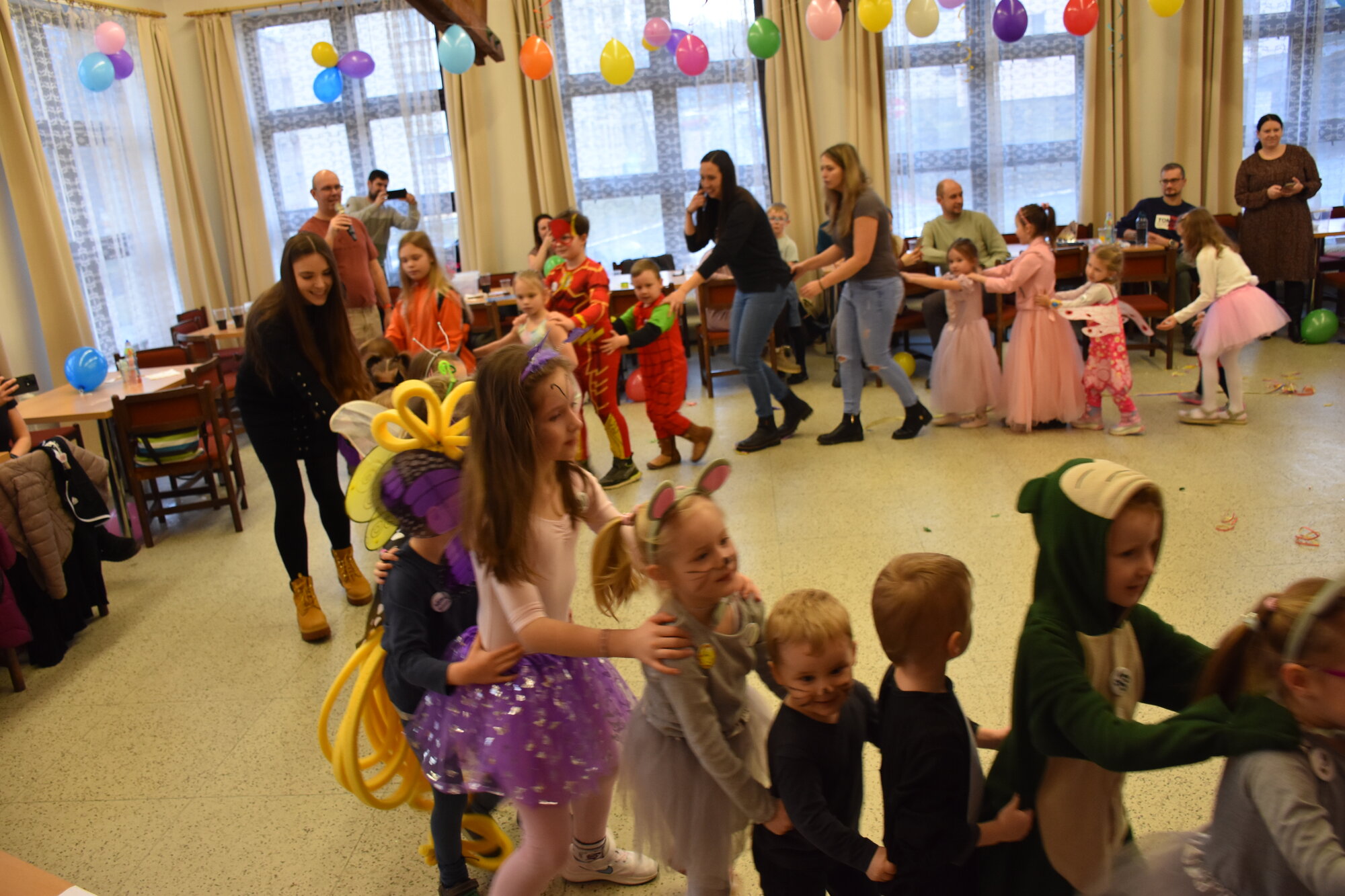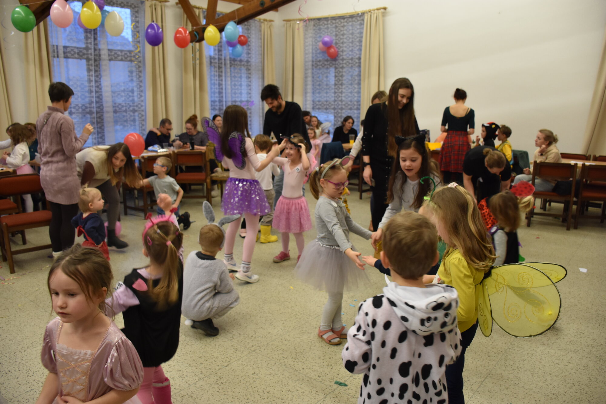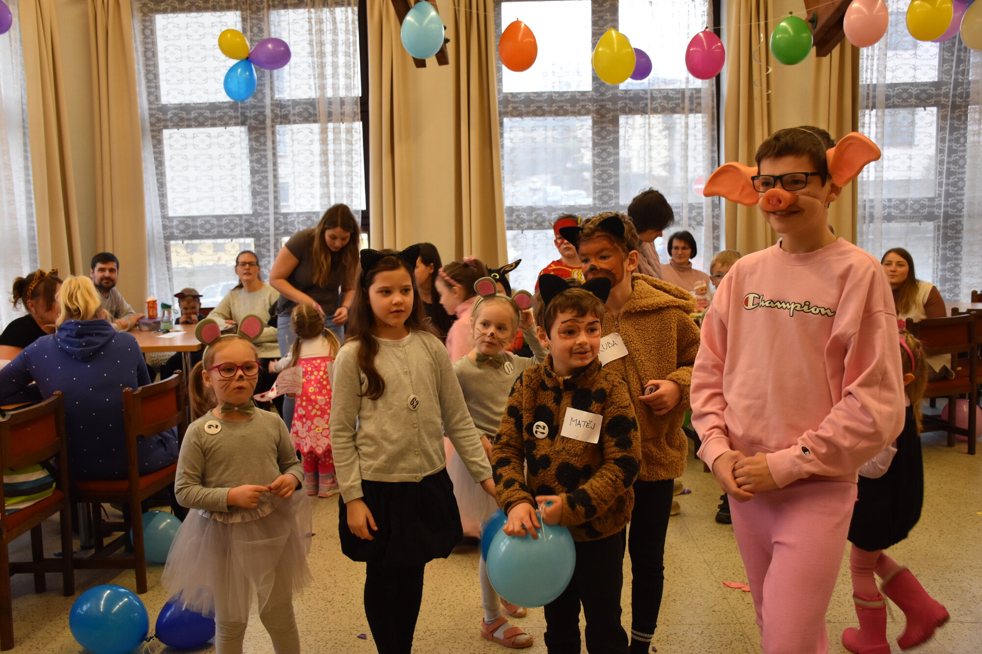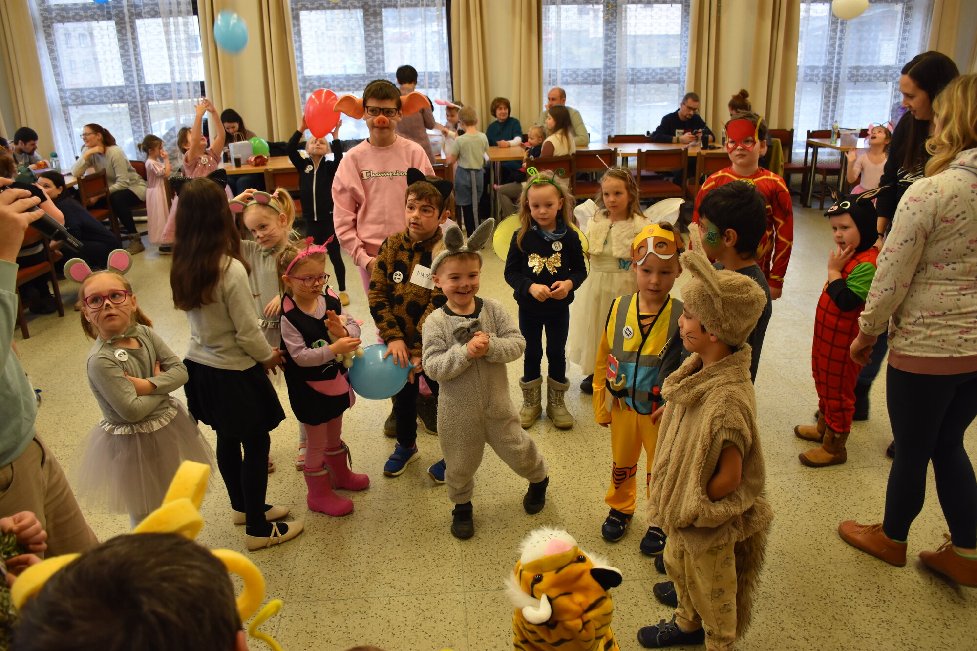 Už 17. dne nového roku jsme navázali na radostné vánoční dny karnevalovým veselím. Místem zvířecího reje v maskách a kostýmech byla opět pelhřimovská Myslivna. Po tradičním úvodu, kdy jsme se seznámili s některými hosty – myšleno fenkem, prasátkem, myšičkami, kočičkami, housenkou, beruškami, motýli, dinosaurem a dalšími, jsme se pustili do zpívání a tancování. Celý program byl zpestřen novinkou v podobě krásného foto koutku. Pro děti byla připravena i tvořivá dílna, kde se to hemžilo duhovými rybičkami, které pak zaplnily celý pomyslný rybník na tanečním parketu.