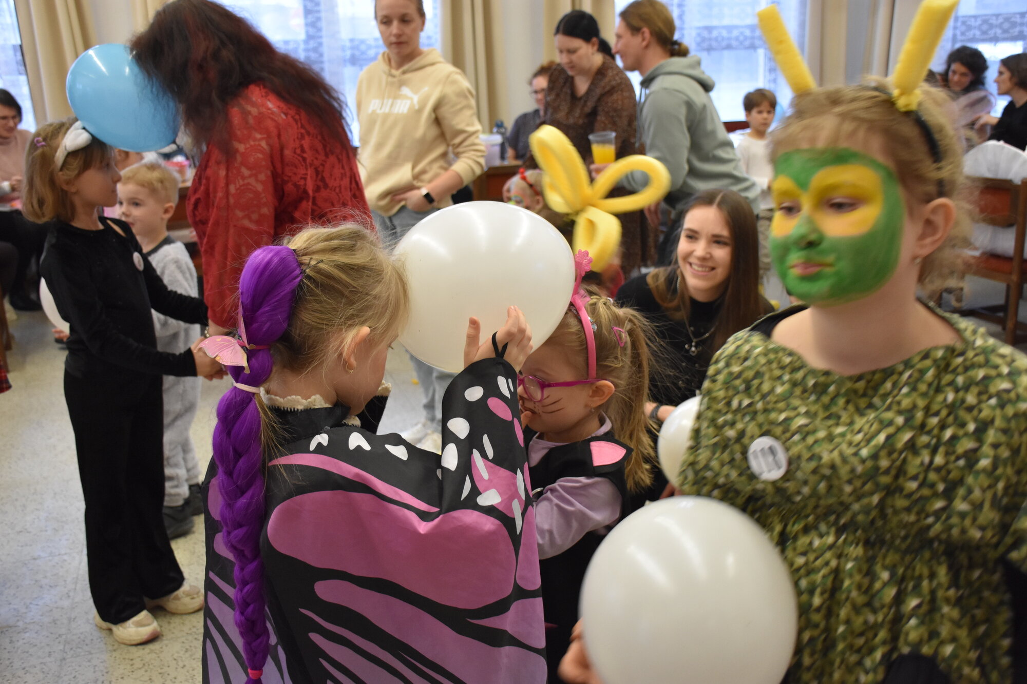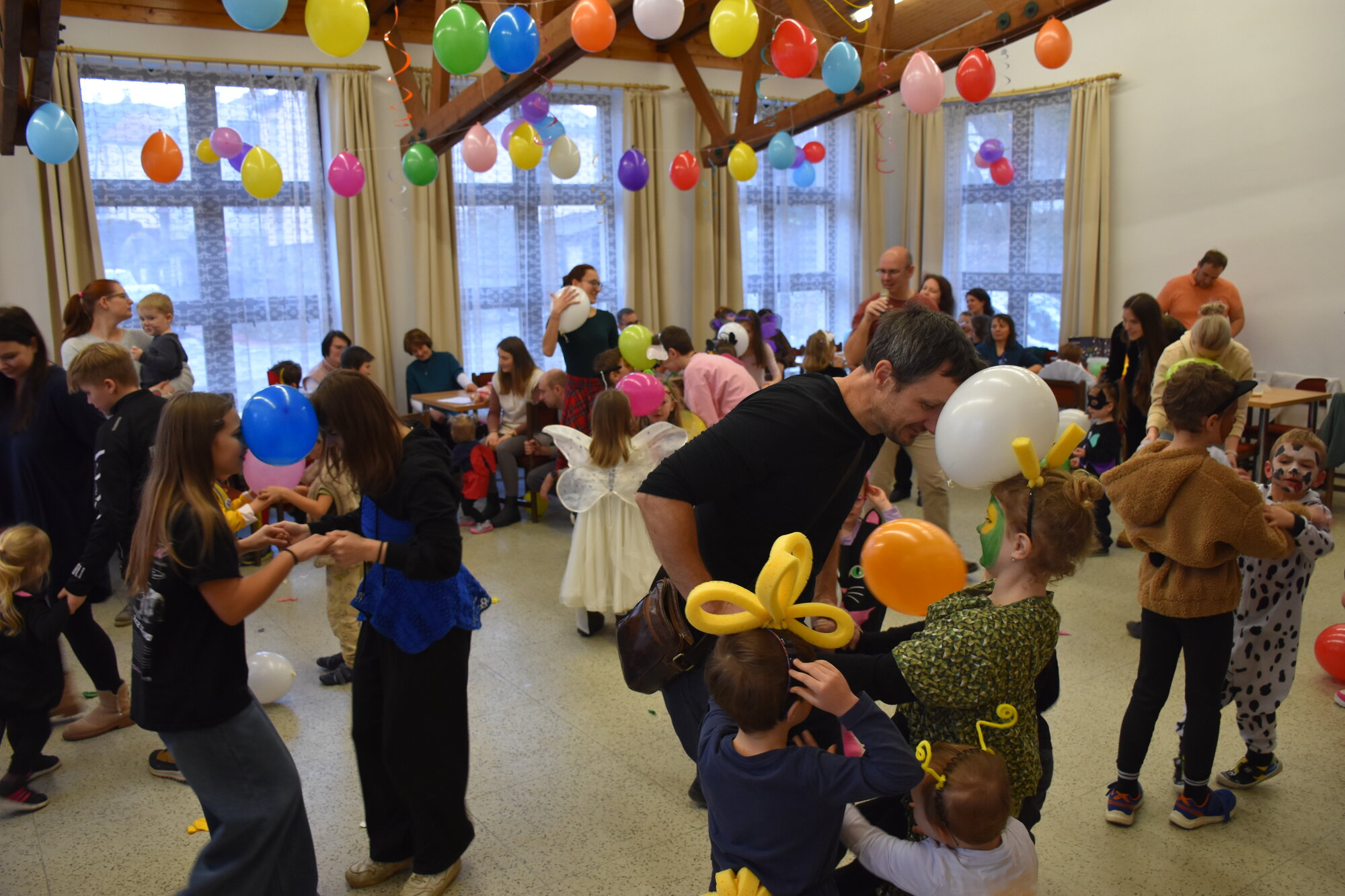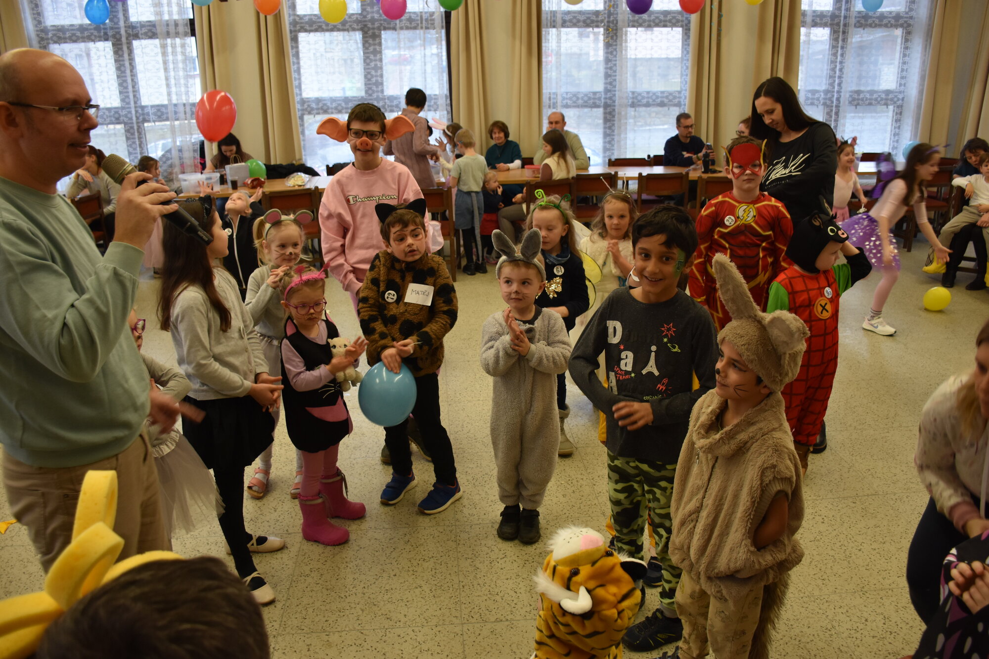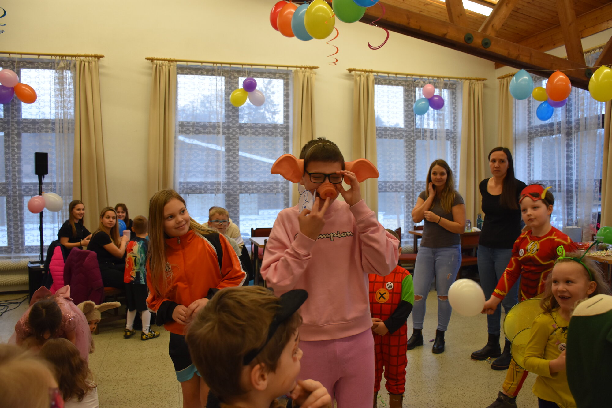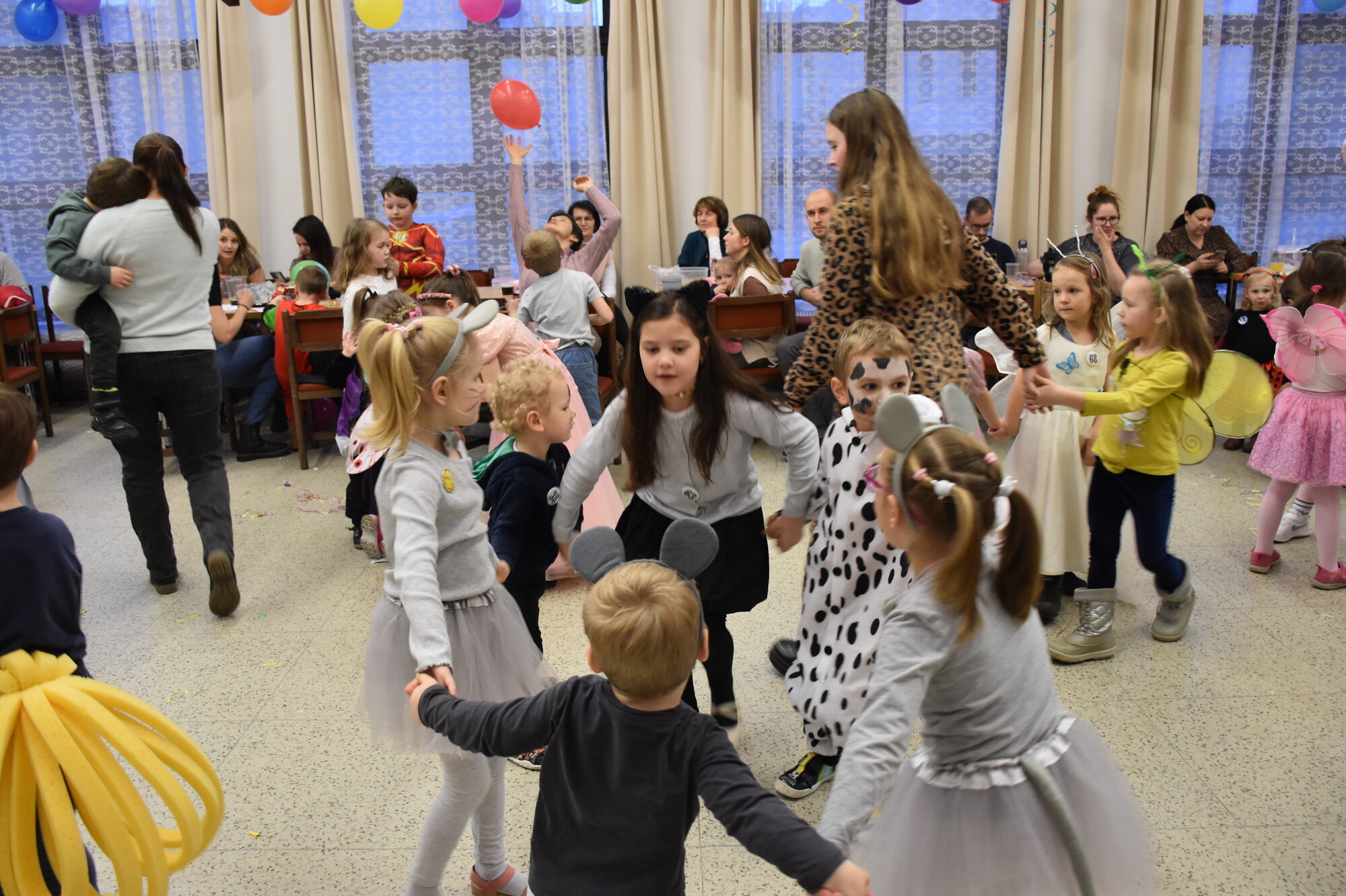 Už 17. dne nového roku jsme navázali na radostné vánoční dny karnevalovým veselím. Místem zvířecího reje v maskách a kostýmech byla opět pelhřimovská Myslivna. Po tradičním úvodu, kdy jsme se seznámili s některými hosty – myšleno fenkem, prasátkem, myšičkami, kočičkami, housenkou, beruškami, motýli, dinosaurem a dalšími, jsme se pustili do zpívání a tancování. Celý program byl zpestřen novinkou v podobě krásného foto koutku. Pro děti byla připravena i tvořivá dílna, kde se to hemžilo duhovými rybičkami, které pak zaplnily celý pomyslný rybník na tanečním parketu.