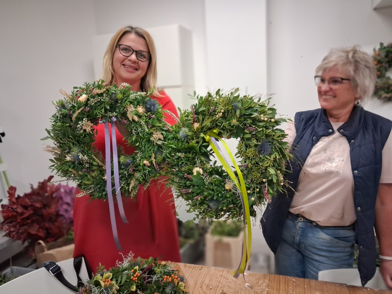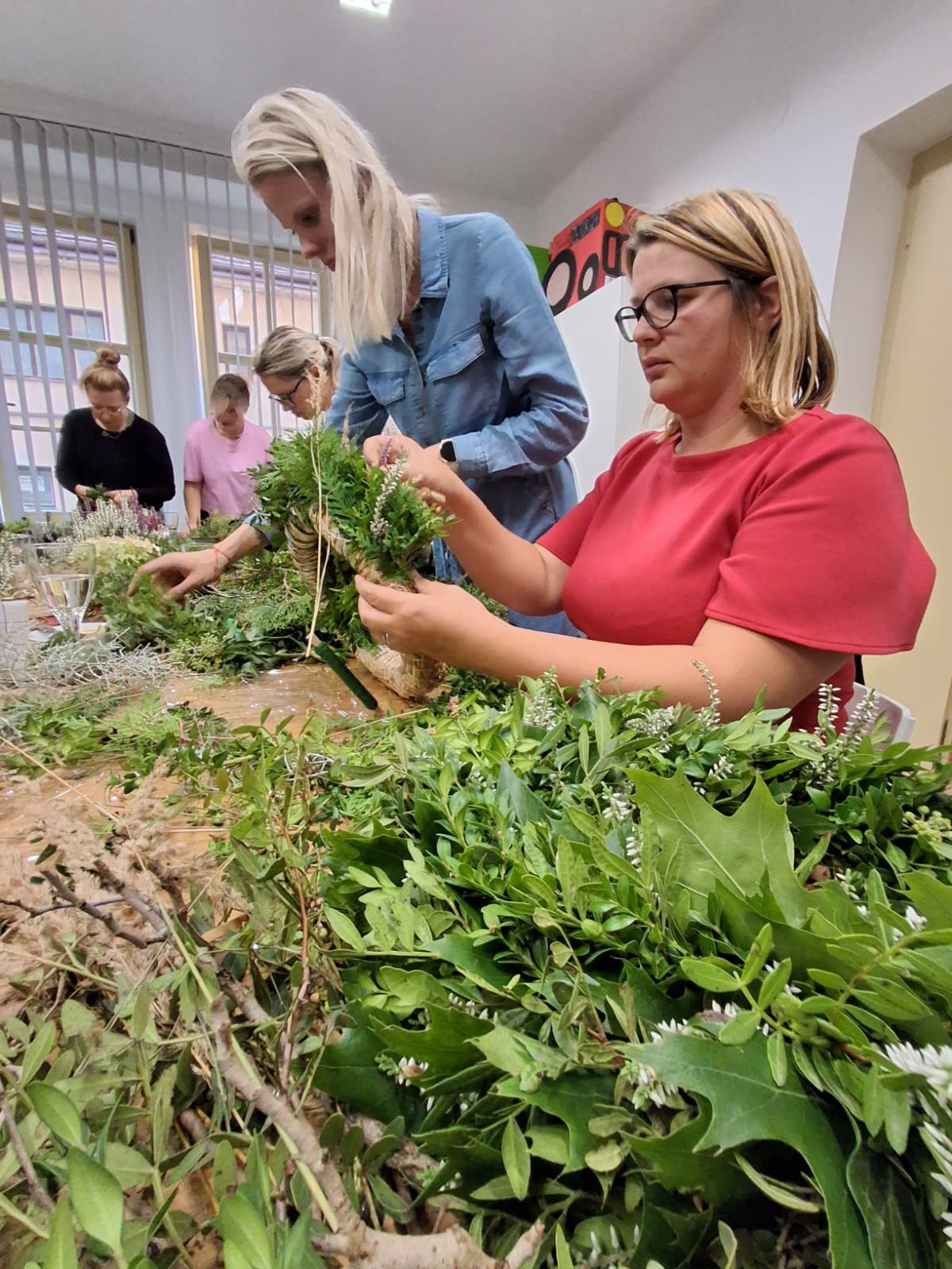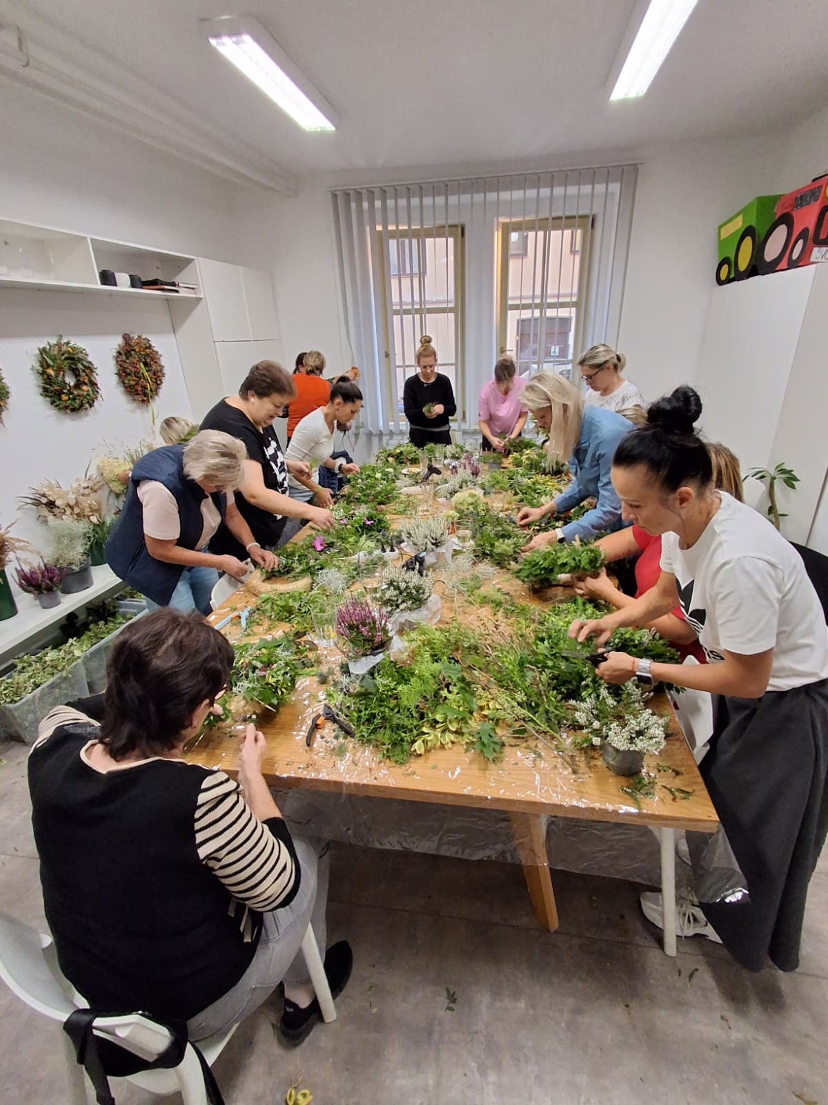 Pod vedením Markéty Smetanové vzniklo hned 14 nádherných věnců. Každý byl jiný, každý originální, a přesto všechny společně voněly barvami a kouzlem podzimu. Všichni měli k dispozici spoustu materiálu, barev a inspirace, takže fantazii se meze opravdu nekladly, vždyť podzim je o barvách.