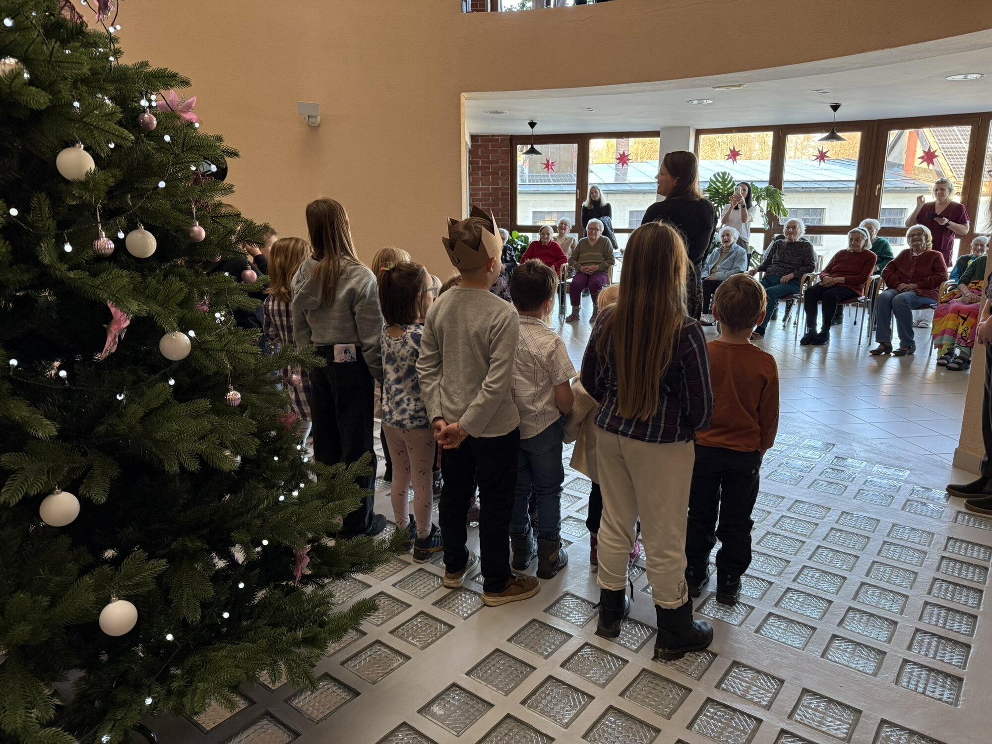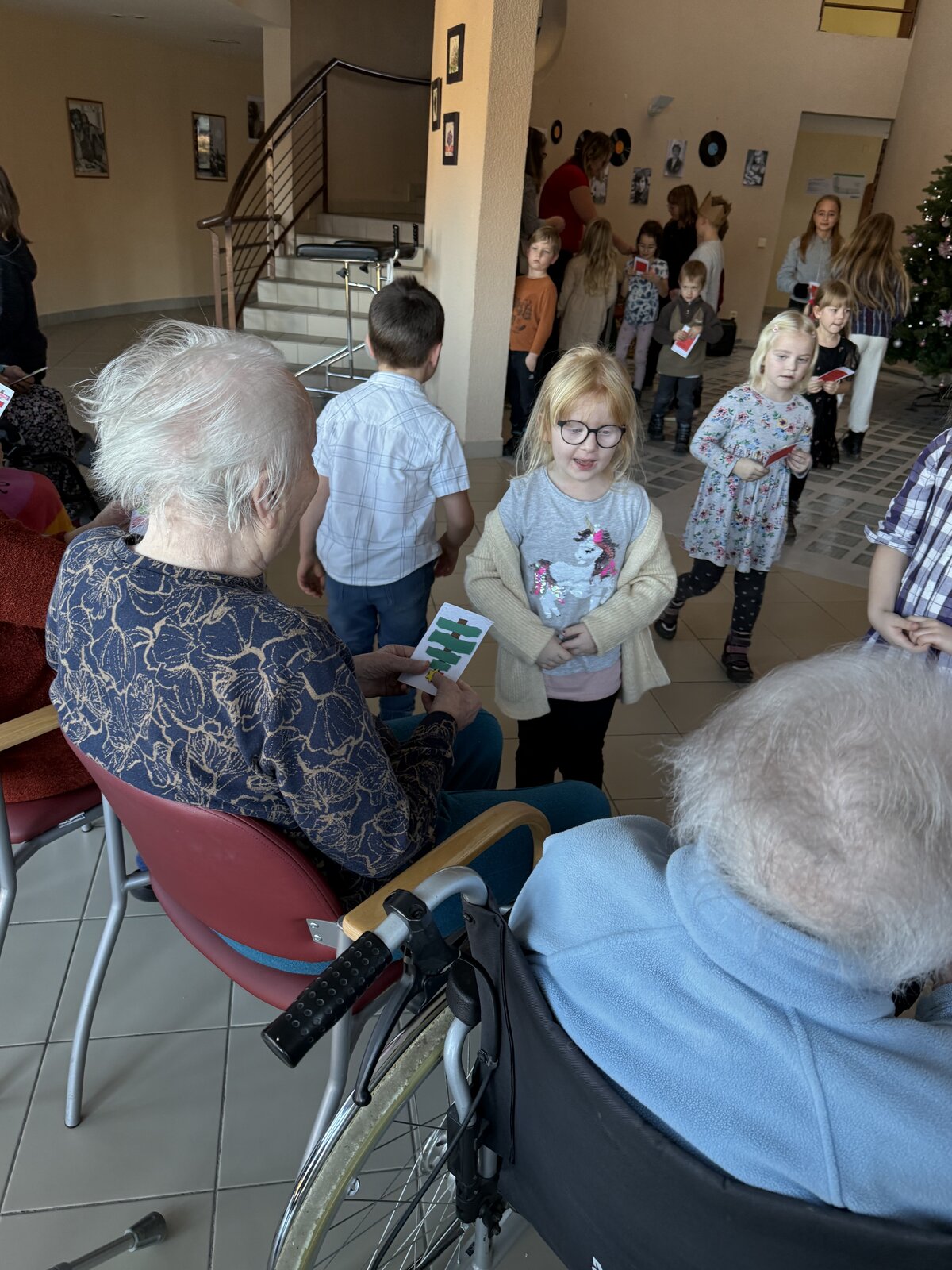 V pondělí 18. prosince 2025 jsme se společně vydali do Domova pro seniory v Pacově, kde děti svá přání osobně předaly. Setkání bylo naplněno příjemnou atmosférou – společně jsme si zazpívali známé koledy, prohodili vlídná slova a rozdávali úsměvy. Velkou radost seniorům přineslo také vystoupení dětí z dramatického kroužku, které si pro ně připravily krátké vánoční představení.