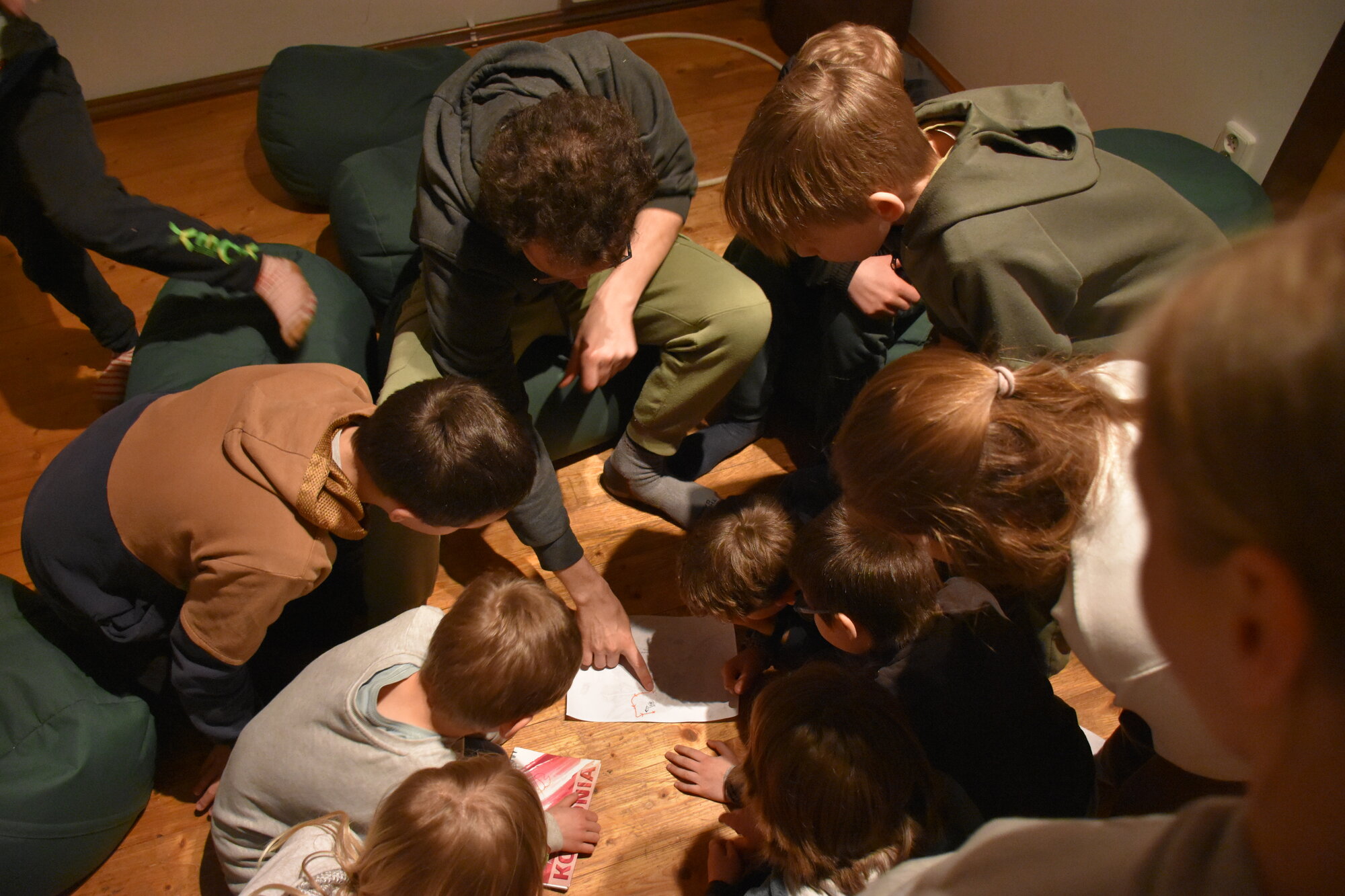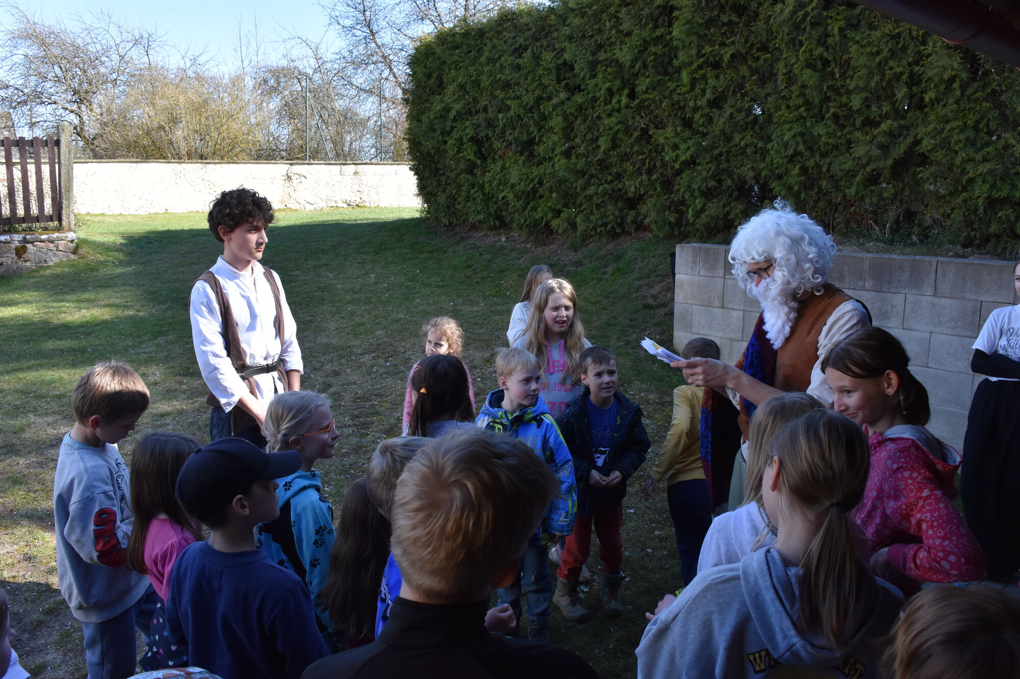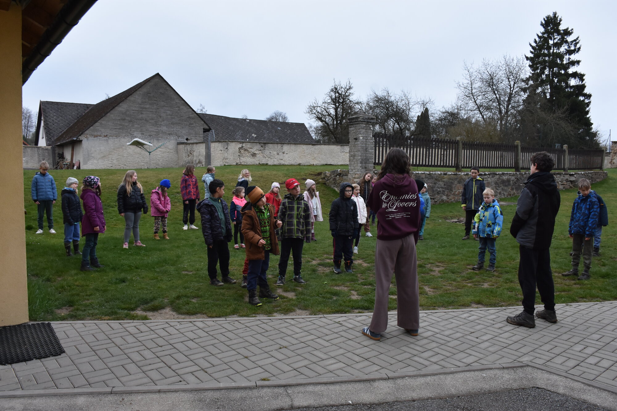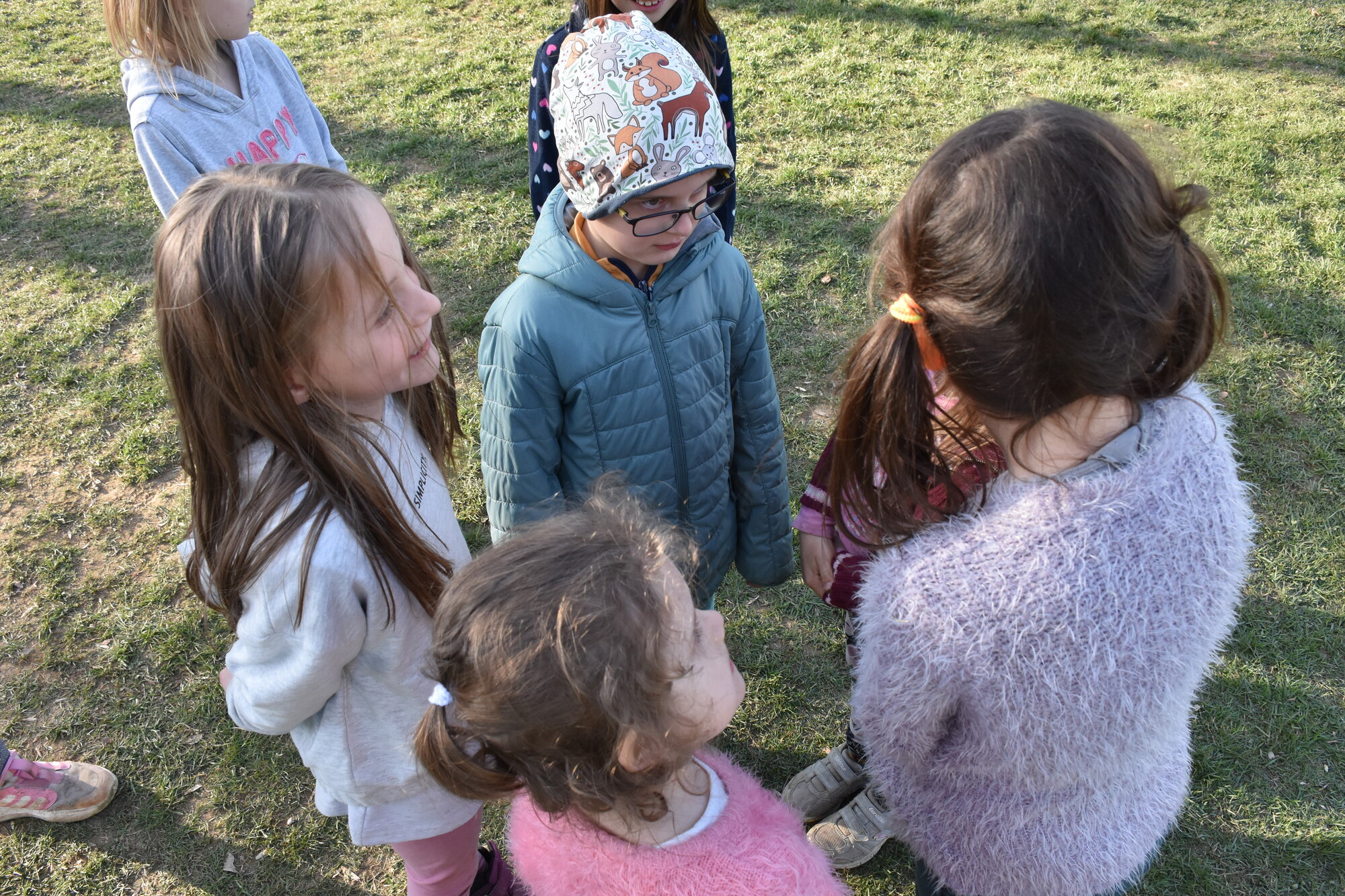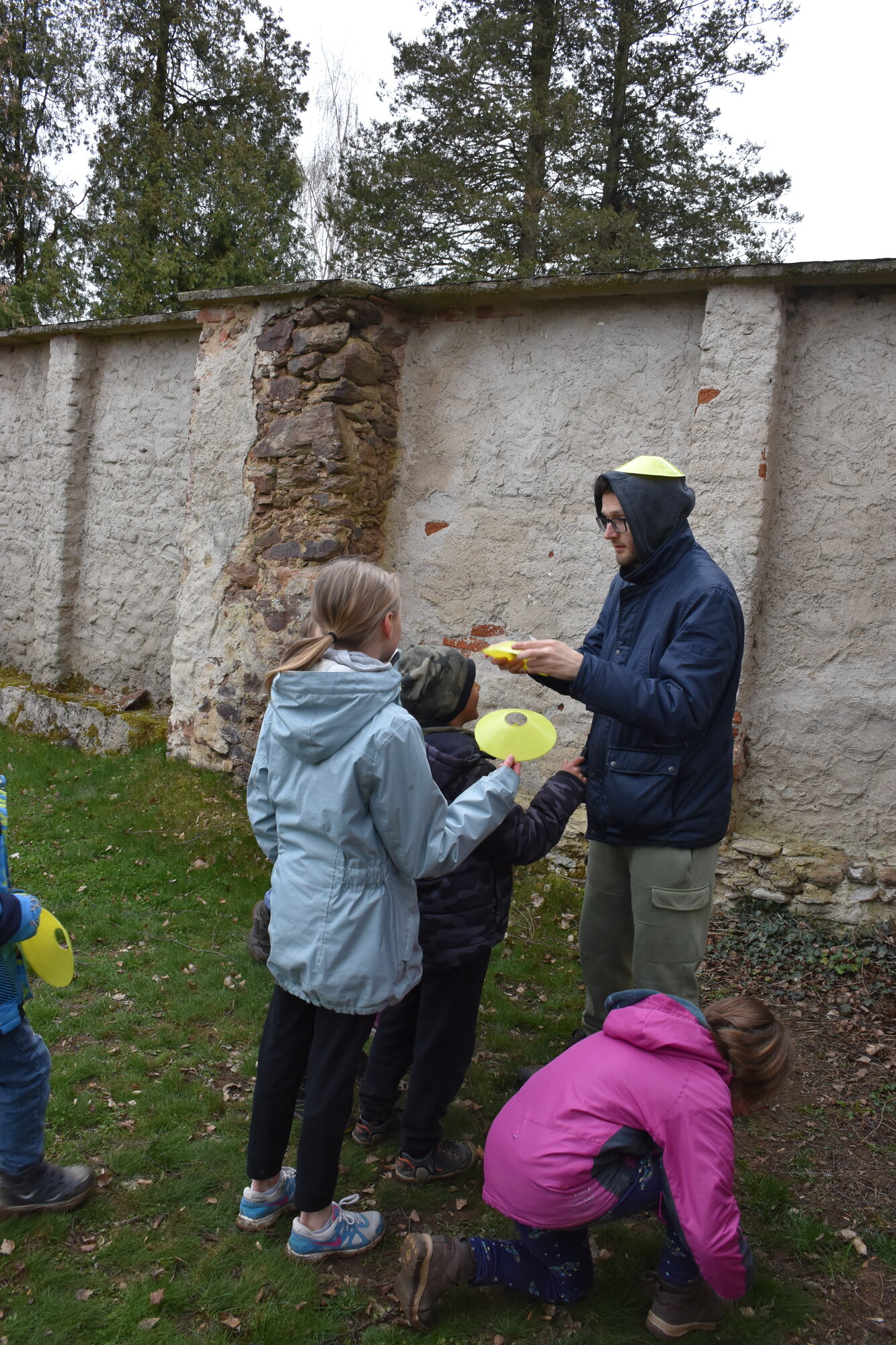 Jarní víkendovka začala v pátek po páté hodině. Potom, co přijel i poslední účastník, byli všichni nováčci provedeni po areálu fary, aby věděli, kde stráví následující víkend. Hned poté každý dostal polovinu obrázku, na kterém bylo vyobrazené jedno pravidlo. Děti musely najít toho, kdo má druhou polovinu, a vymyslet, o jaké pravidlo se jedná. Takto jsme se seznámili s našimi pravidly.