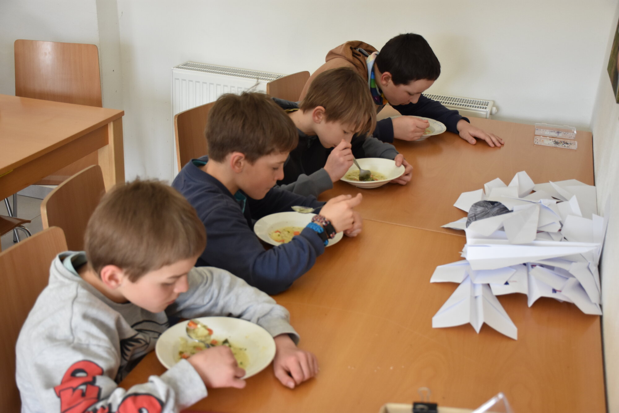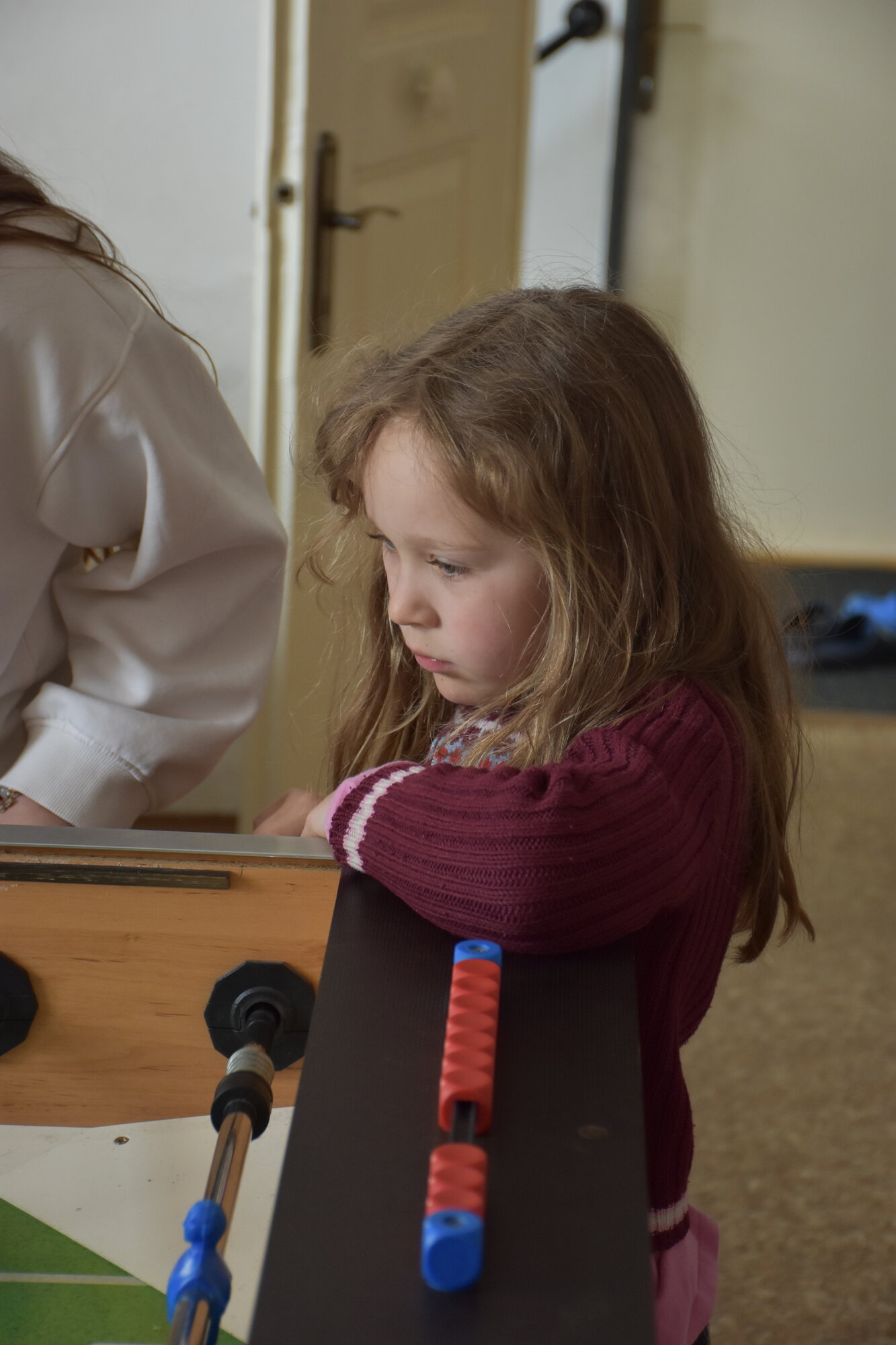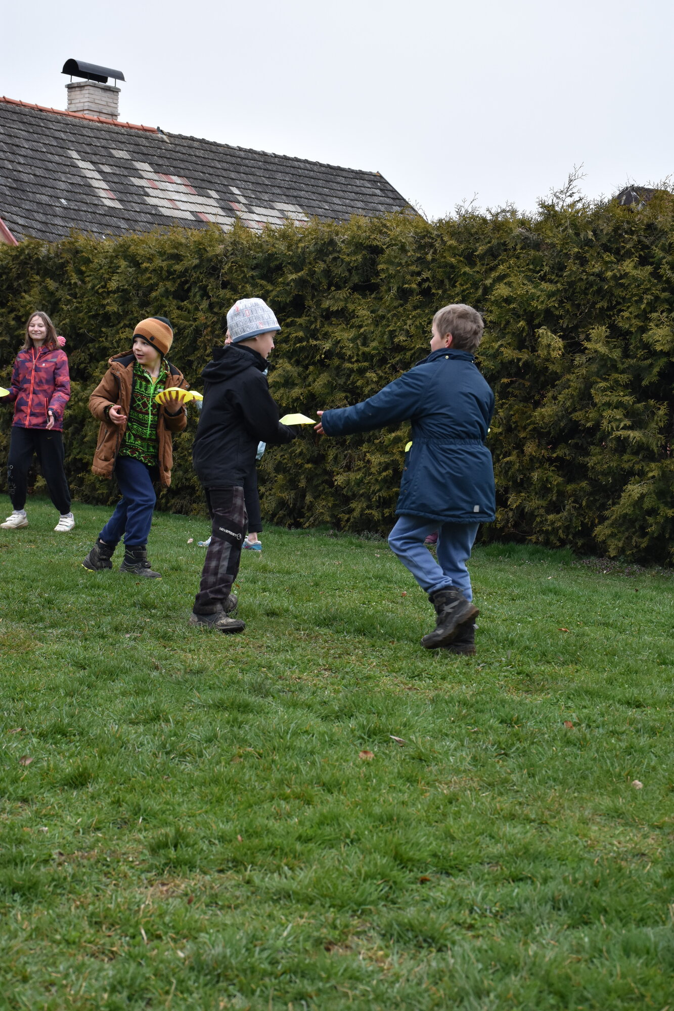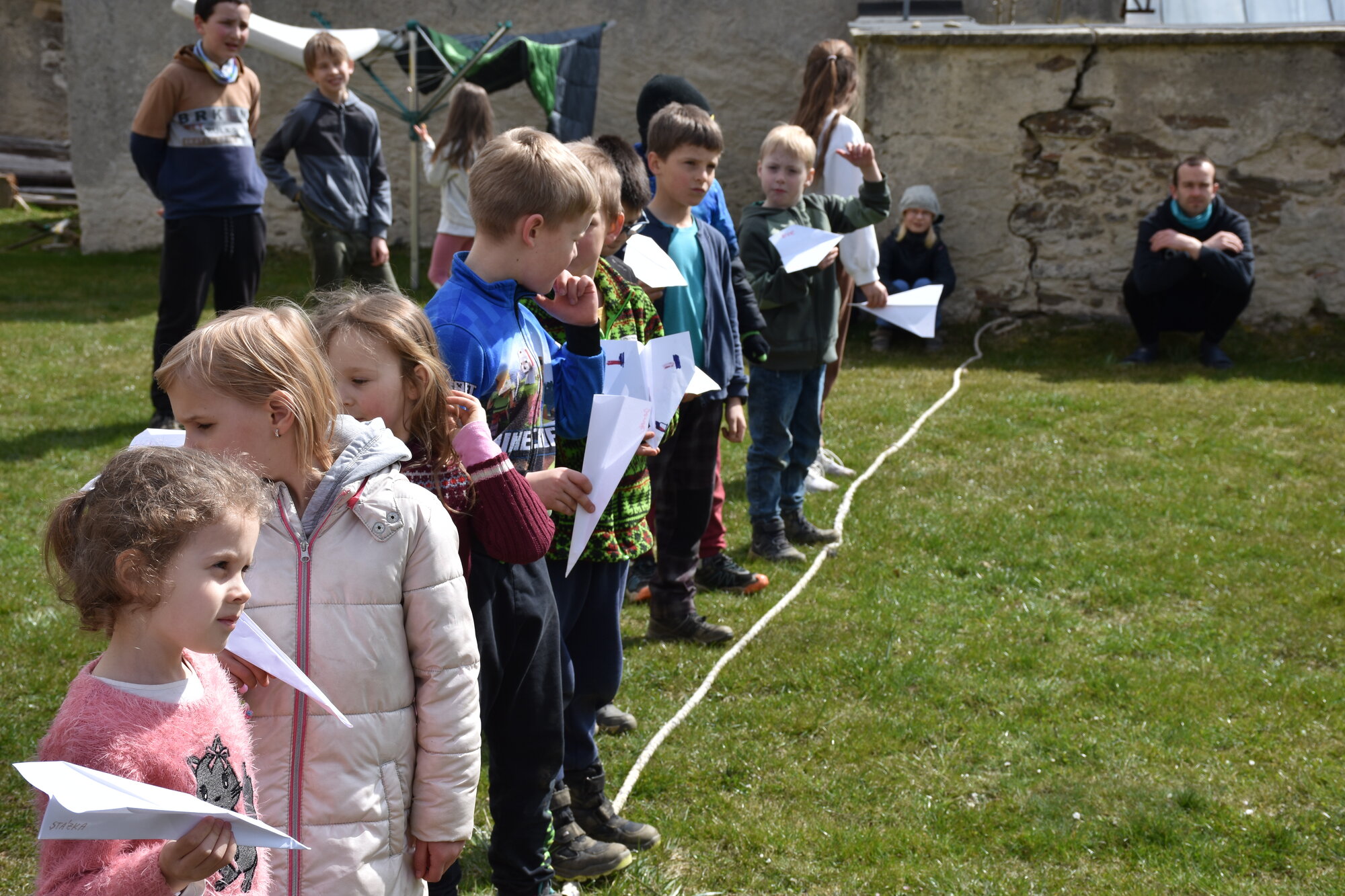 Potom nás čekala stanoviště. Každý dostal papírek, na který sbíral razítka za splněné aktivity. Žádná však nebyla povinná, děti mohly být zkrátka tam, kde je to baví. Takhle si mohly vyzkoušet skládání závodních vlaštovek, navlékání korálků, stolní fotbálek nebo klasický fotbal, naučit se kouzelnické triky nebo si vyzkoušet bezpečné šermování.