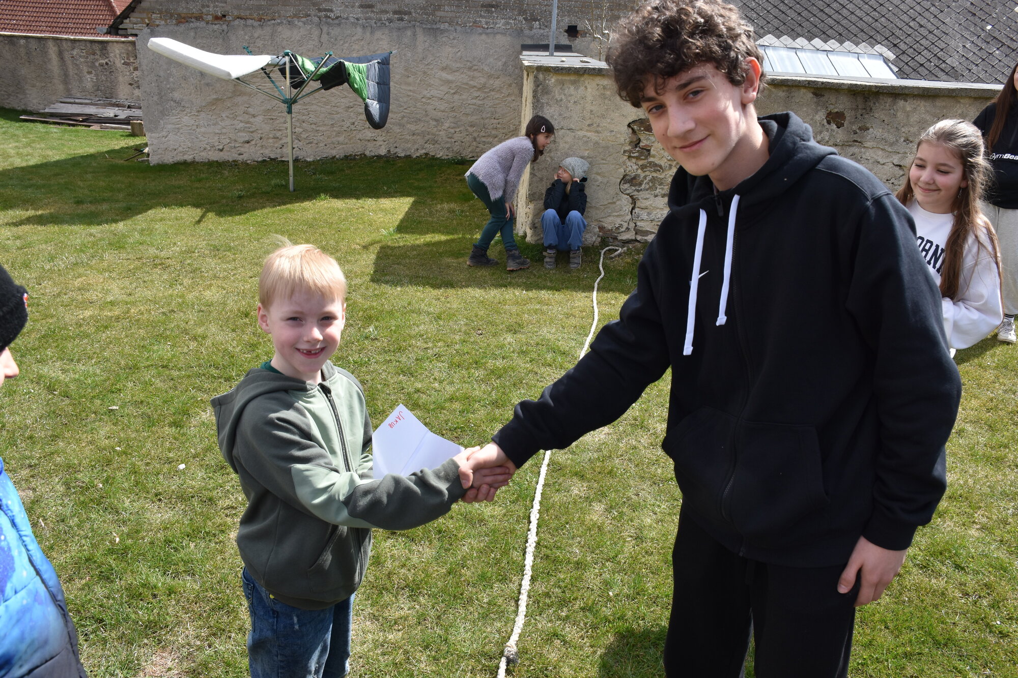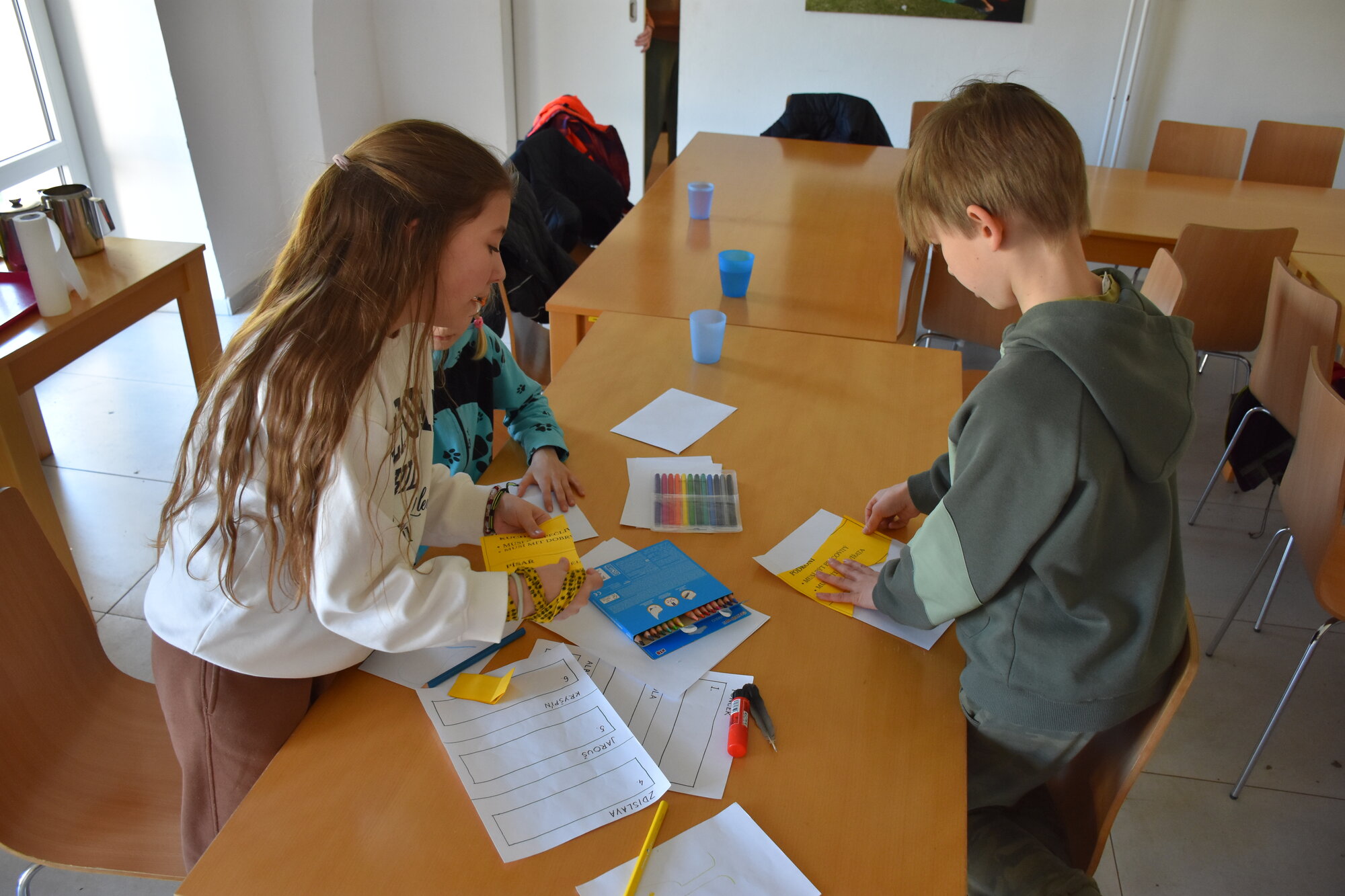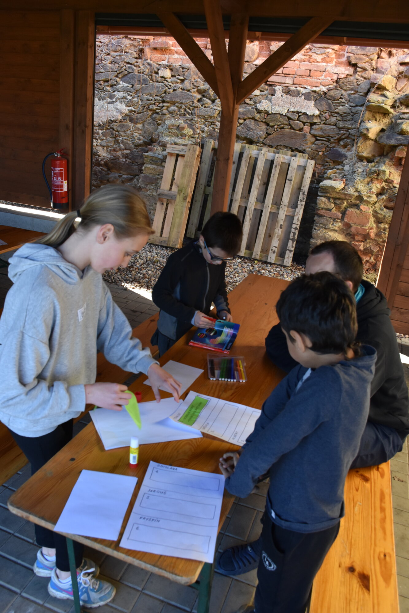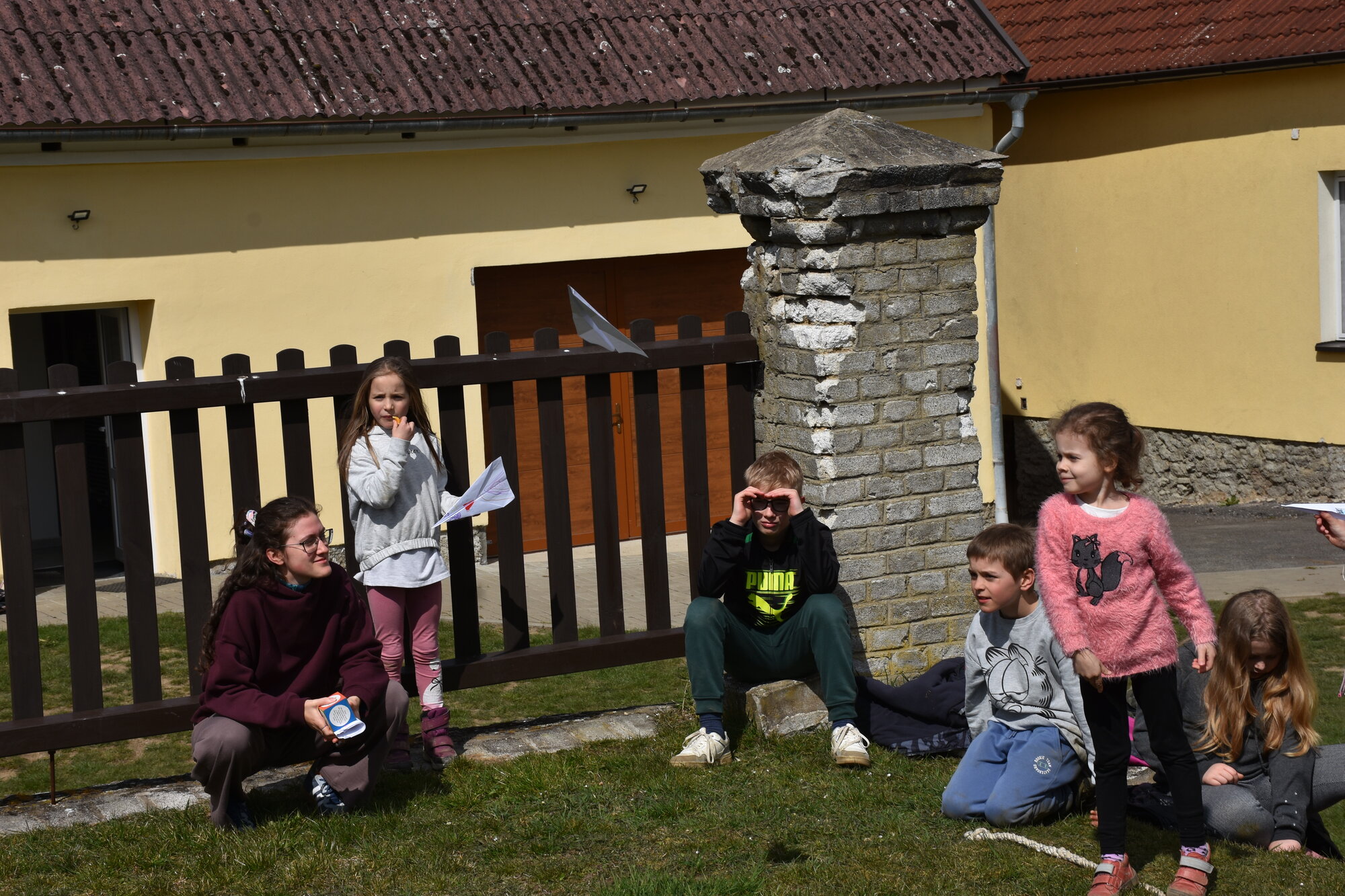 Potom nás čekala stanoviště. Každý dostal papírek, na který sbíral razítka za splněné aktivity. Žádná však nebyla povinná, děti mohly být zkrátka tam, kde je to baví. Takhle si mohly vyzkoušet skládání závodních vlaštovek, navlékání korálků, stolní fotbálek nebo klasický fotbal, naučit se kouzelnické triky nebo si vyzkoušet bezpečné šermování.