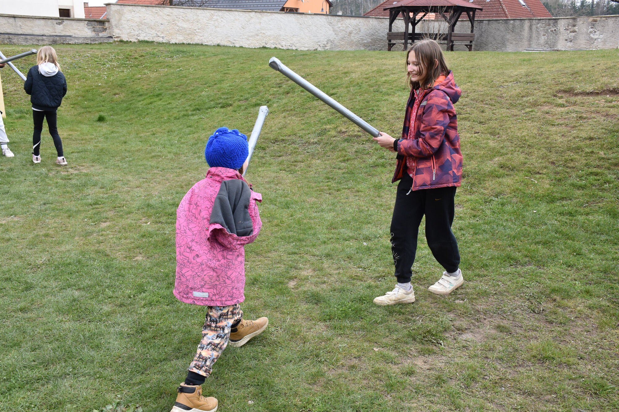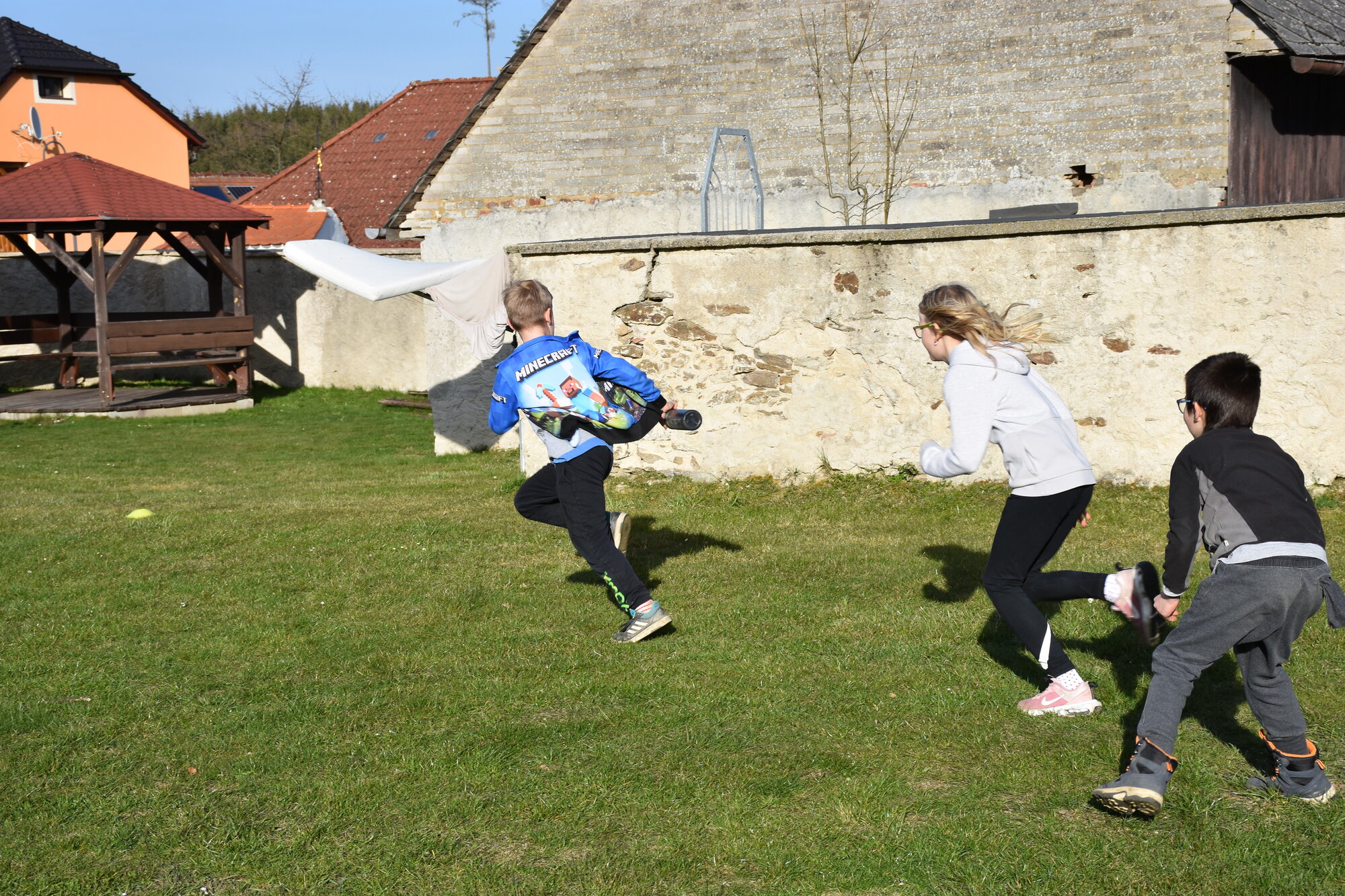 Do večeře jsme si stihli zahrát ještě pár her. Boj o vodu a tichošlápka, někdo se rozhodl hrát si na sekačku a trhali dlouhou trávu na hřišti.